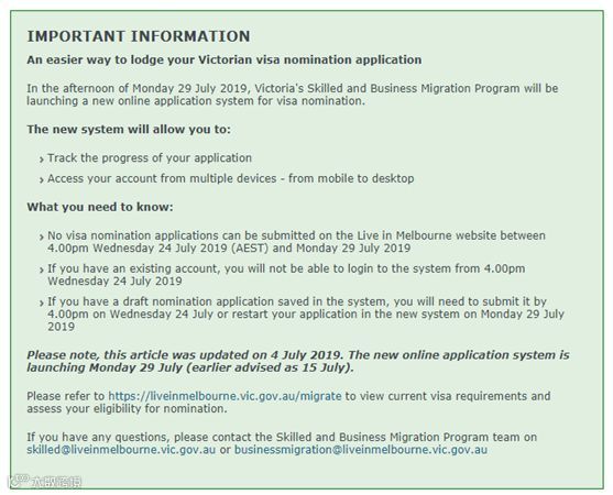 维州7月24日开始更新系统,从2019年7月24日(星期三)下午4点到2019年7月29日(星期一),申请人无法提交提名申请。