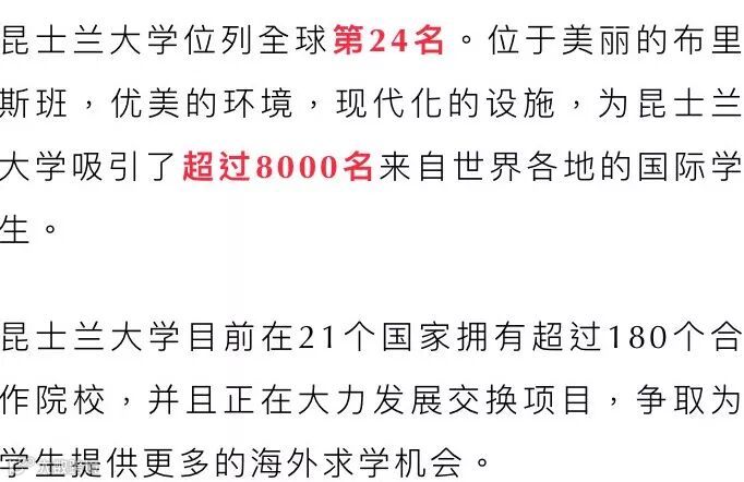 莫纳什大学拥有来自125个国家超过10000名的留学生,与100多所海外高校有密切的合作关系,在国际交流与合作、科研创新和教学质量方面皆居世界领先地位。