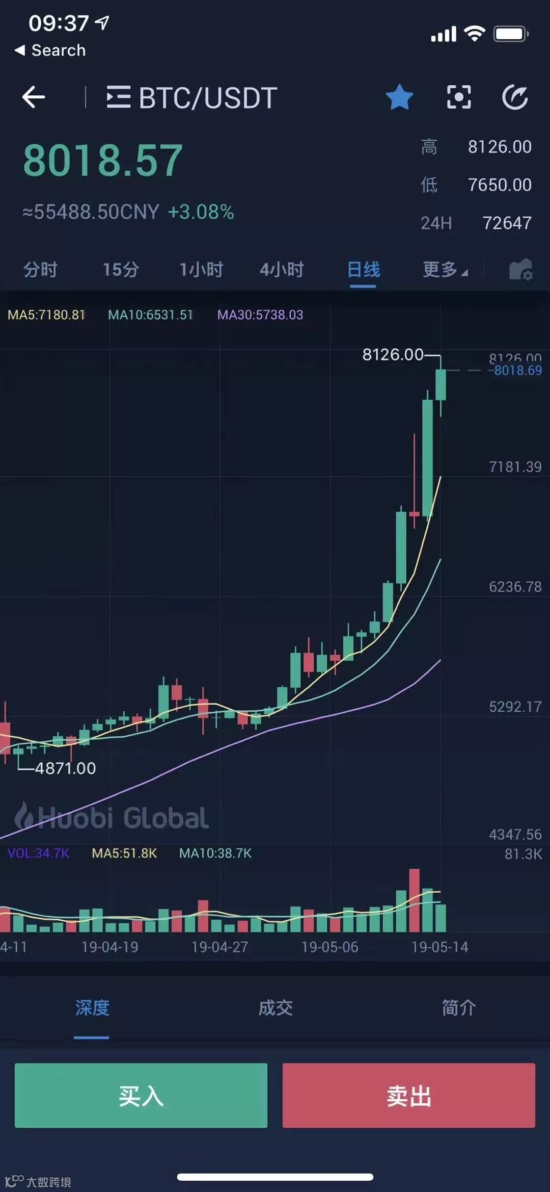 与此同时,比特币价格火箭上升,继5月12日冲破7000美元关卡后,5月13日开始,比特币价格坐火箭上升,突破8000美金,年内涨幅119%!