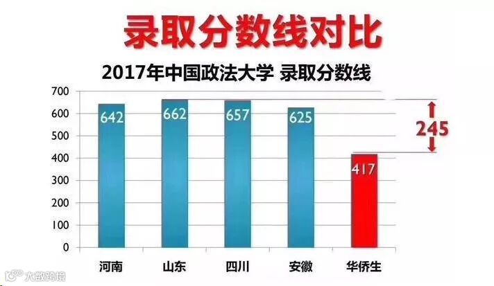 同样是满分750分,在一些省份,华侨生的录取分数线比统招生低了约200分。考试简单许多!