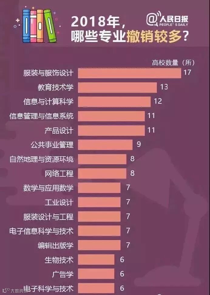 据网友总结,2014-2018五年间,中国高校被撤销专业数量增长了六倍多。