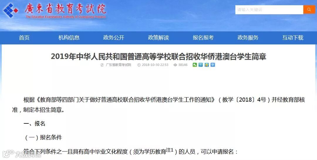 (具体要求以中华人民共和国普通高等学校联合招收华侨港澳台学生办公室发布信息为准。)