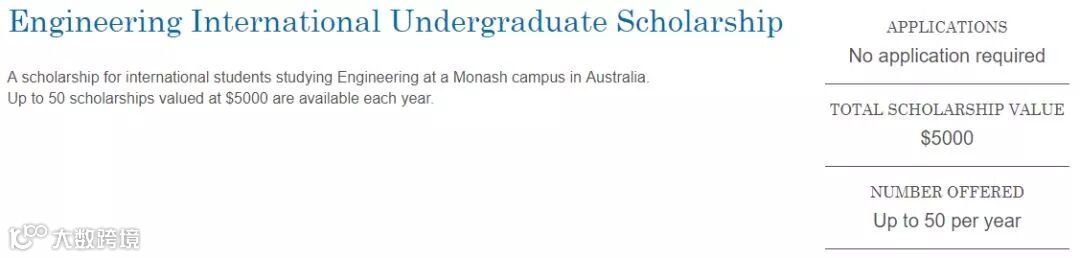 此奖学金适用于那些有兴趣在Monash大学攻读工程类本科课程的国际学生。每年50个名额,每份奖学金$5,000澳币。