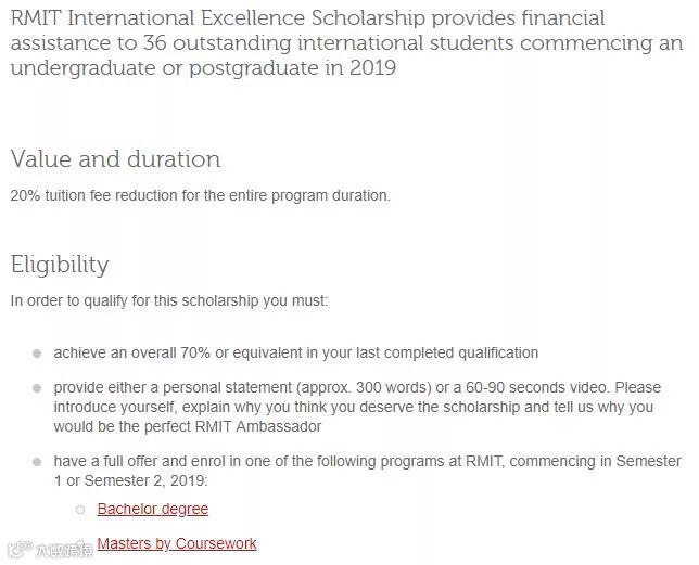 2019年,RMIT将会为36名优秀国际留学生提供该奖学金!