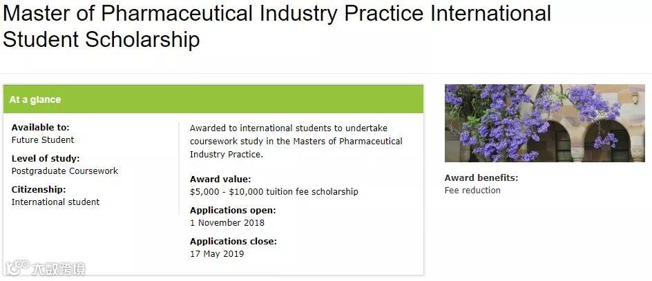 其中,包括了本科、硕士课程类、硕士研究类、博士等各个学习阶段的奖学金;而且很作高额奖学金都指定专业,例如制药实践硕士奖学金:
