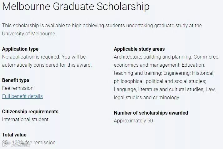 该奖学金适用于墨尔本大学攻读研究生的高学历学生。