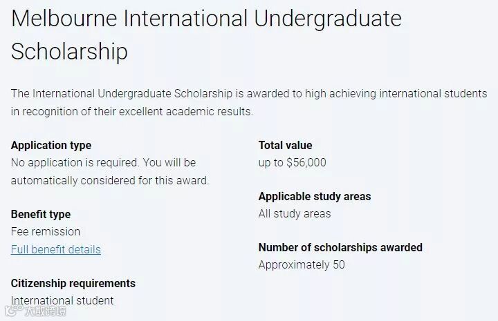 1. 奖学金金额高达:AUD$56,000.