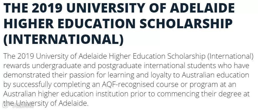 阿德莱德大学的高等教育奖学金Higher Education Scholarships是也是适用于就读本科和研究生课程的国际学生。
