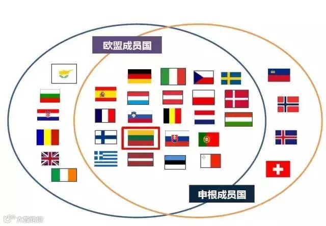 欧盟共有28个成员国。除了英国为非申根国外,其余欧盟成员国基本同申根国成员一致。欧洲联盟成员国即通常所说的欧盟,是根据欧洲联盟条约,自愿加入欧洲联盟的国家。