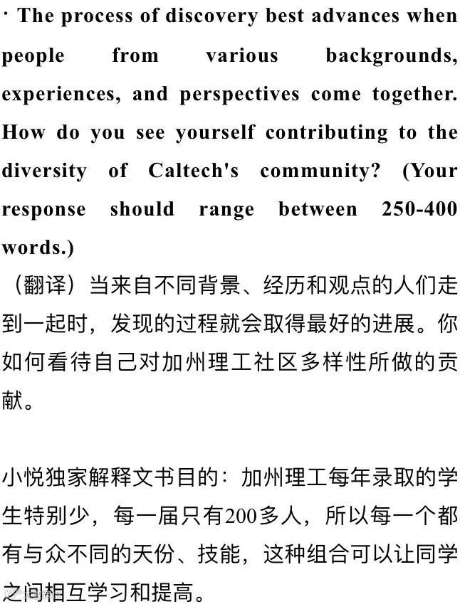 请注意以上所有的题目都是必答题。从文书题目看,加州理工希望看到具有如下所有条件的申请者: