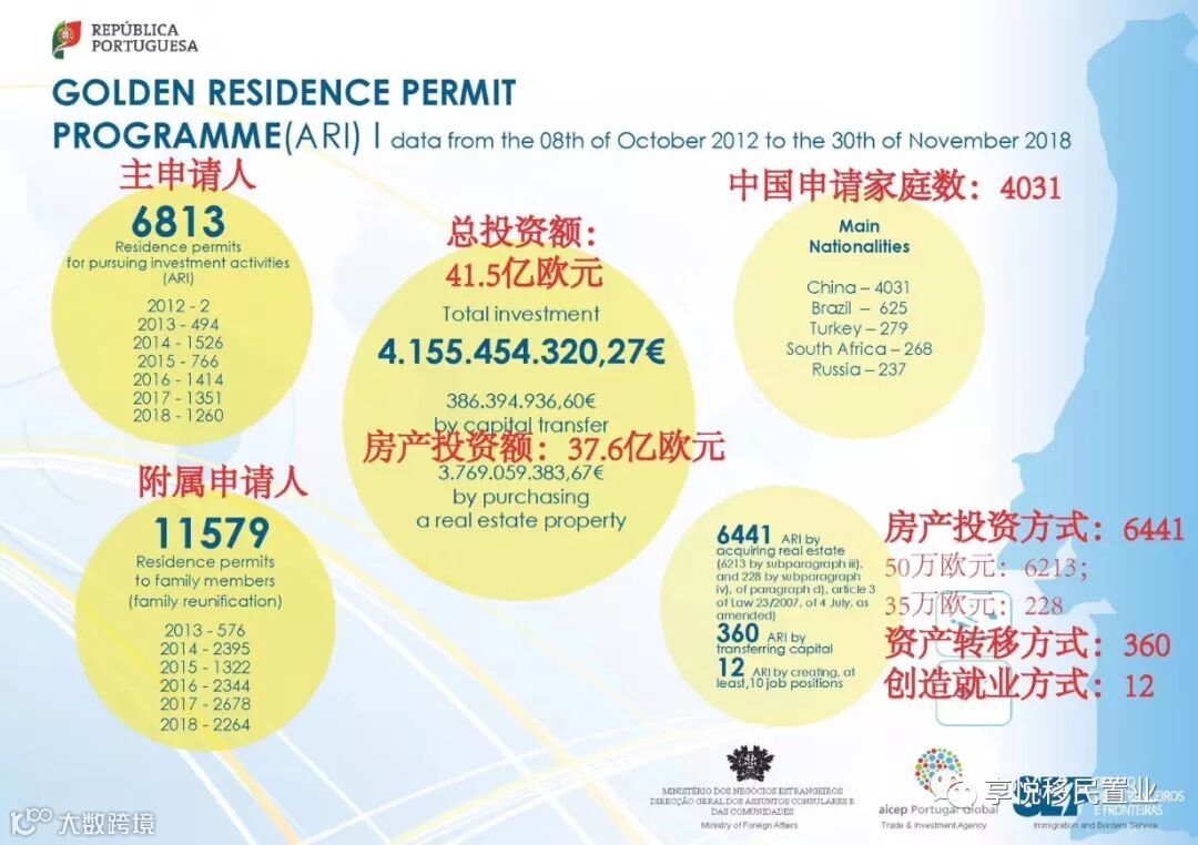 在葡萄牙政府公布的数据可以看出,移民从2012年10月8日到2018年11月30日的统计数据显示,成功移民葡萄牙的人数激增。其中房产投资额占总投资额8成;中国申请家庭数是其它国家的3倍。