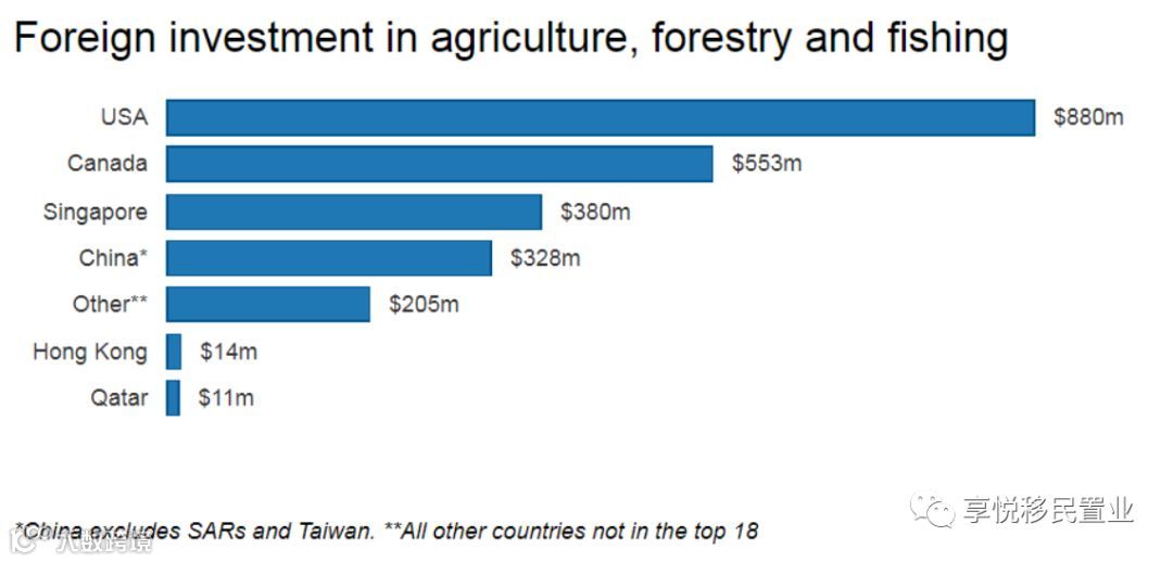 2017-2018年度,来自中国对澳洲的农业投资达到3.28亿美元,仅次于美国、加拿大和新加坡,潜力可期。