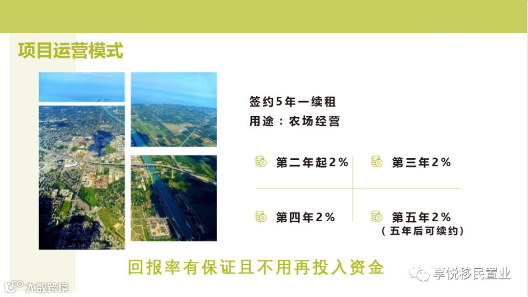 签约5年一续租,用于农场经营,回报率有保证且不用再投入资金。