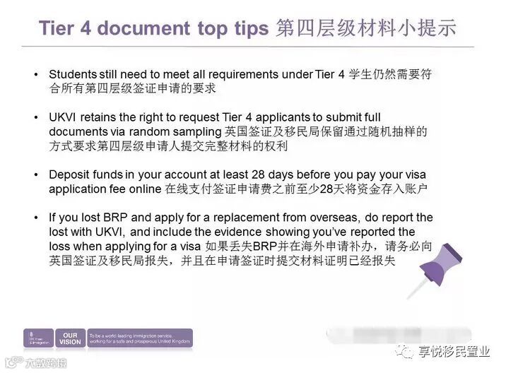 即将迎来2019年签证高峰,给大家做一些小提示,18年夏天开始,简化了对第四层级签证申请的材料要求,在递交签证申请时,不需要提供学历证明、资金证明和英语语言能力证明,但学生仍需符合所有第四层级签证申请要求。