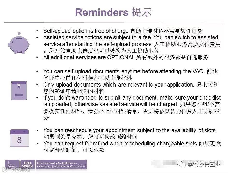 系统变更后申请分为三大块,一是在英国政府网站填申请表;二是在签证申请中心的网站上传材料,选择预约时间;三是在签证申请中心提交护照、采集指纹和拍照片。