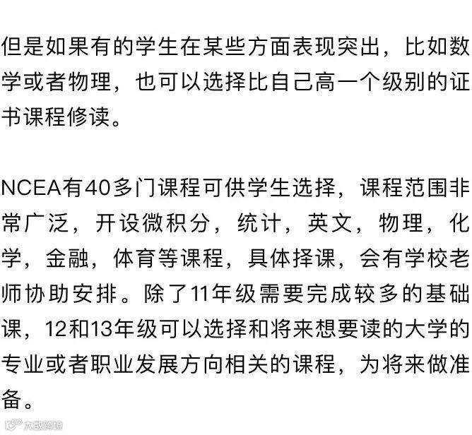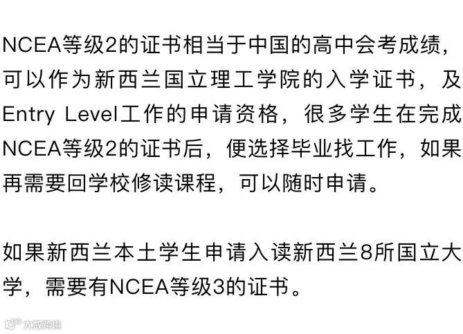 NCEA是National Certificate of Educational Achievement的简称,翻译成中文是全国教育成绩证书,分三个级别:一级、二级和三级。