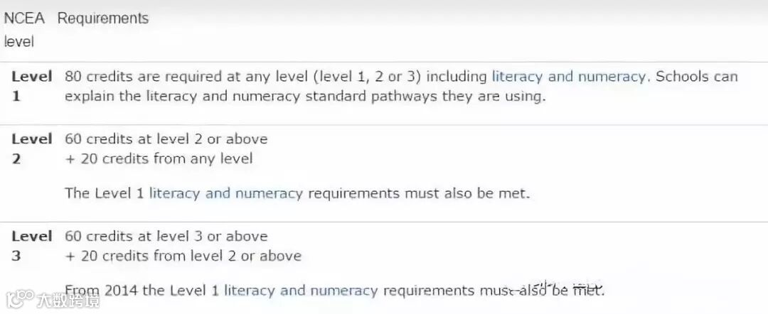 学生想要拿到NCEA,必须要获得足够的学分(Credits),并满足特殊要求才能得到这个级别的NCEA。具体要求如下: