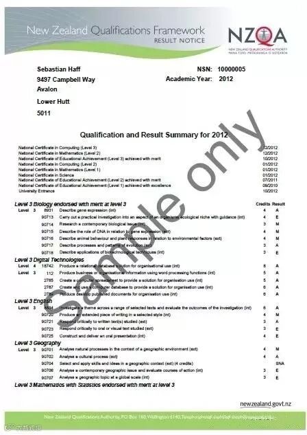 它是新西兰学生高中成绩的认证证书,代表着新西兰中学学历。