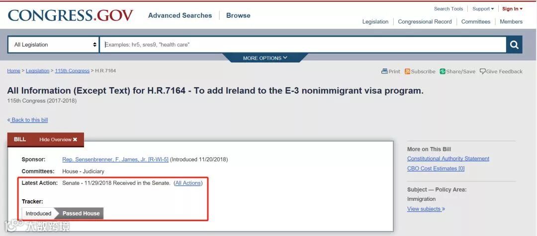 2018年美国国会通过爱尔兰公民申请 E3 签证的法案。目前该签证只针对澳洲公民开放,美国E3签证没有年龄限制,有效期两年无限续签。