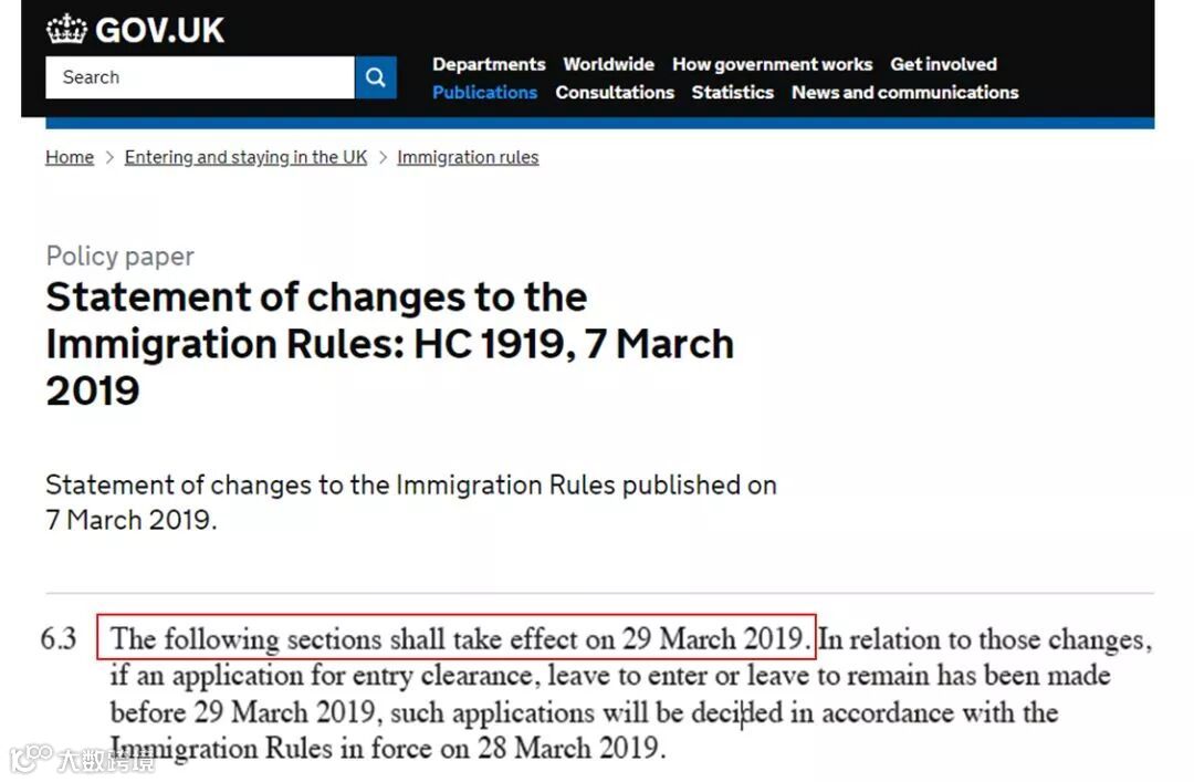 2019年3月7日,英国移民局出台了新的政策修改法案,并宣布新 政策将在2019年3月29日正式实施。