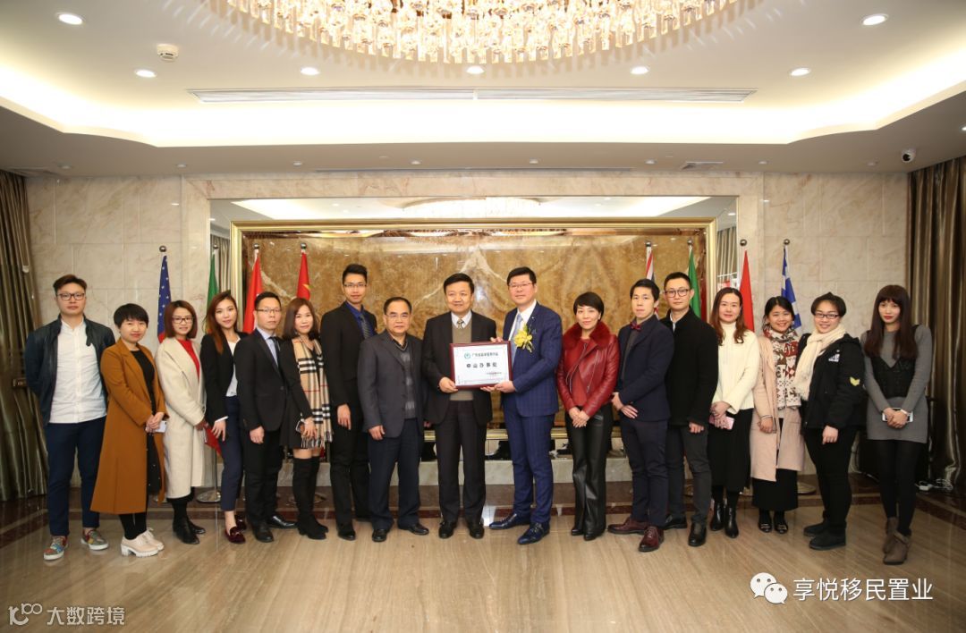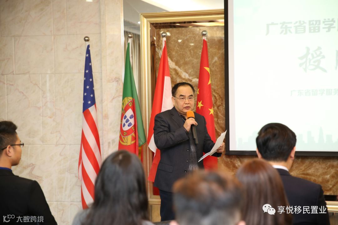 紧接着,广东省留学服务协会会长杜威将中山办事处牌匾授予广东享悦出入境服务有限公司。