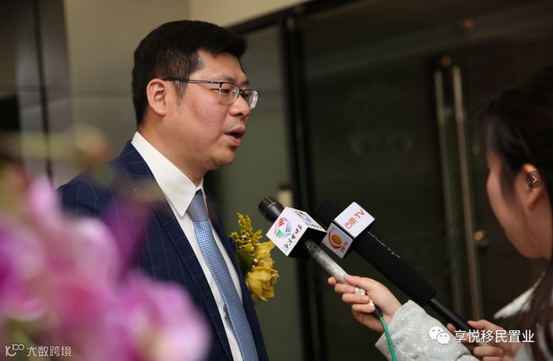授牌仪式结束后,电视台就“未来的移民留学市场、国人出国移民留学主要选择等问题”对广东省留学服务协会中山办事处主任缪景灏先生进行独家采访。
