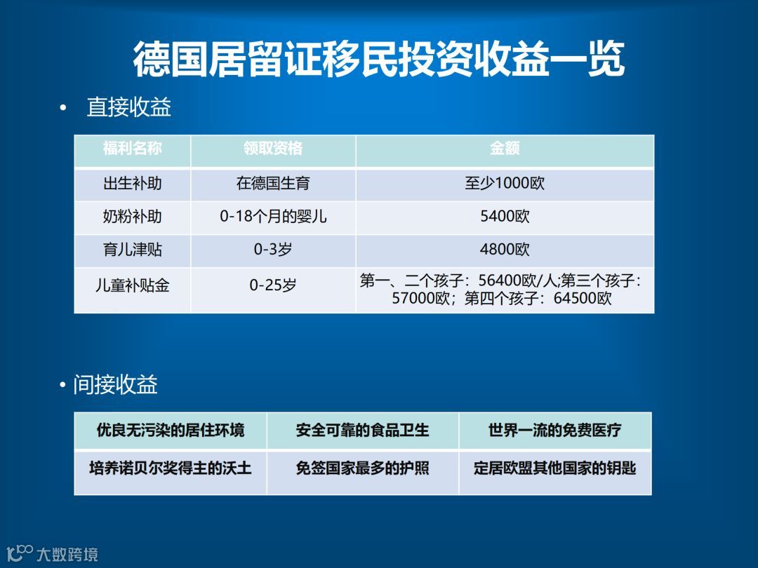 对于移民德国,大多数人的观念可能还停留在技术移民,其实想移民德国还有其他方式。比如说企业家移民项目,就是由专家帮助您注册公司,根据您个人情况量身定制商业企划书,以您公司的名义来购买政府指定的德国迪伦环保城房产(房产的业主是您个人,房产包括房屋的永久产权以及地皮也是您的),6个月之内就能获得有效期为3年的德国居留证,3-5年可以换德国永居卡。