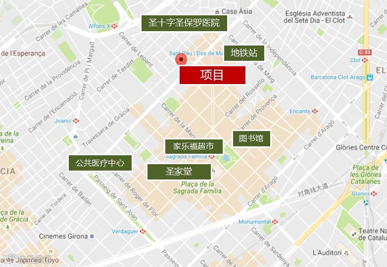 项目位于巴塞罗那扩展区,是巴塞罗那的中心区域。该区域从1860年开始建设,20世纪初这里是商人,名流,达官显贵的聚集地。