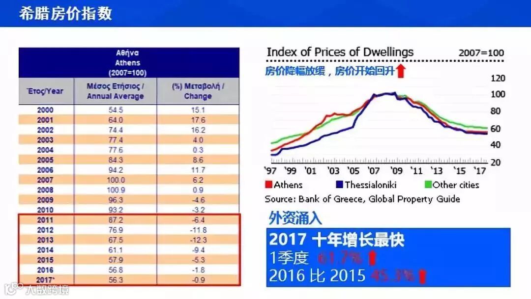 现希腊经济势头发展迅猛。旅游业的火热,为希腊的投资市场提供更加可靠的依托。特别是希腊的房地产市场,2017 年希腊的外资房产投入创 10 年以来的增长新高,仅第一季度就上涨了 61.7%。