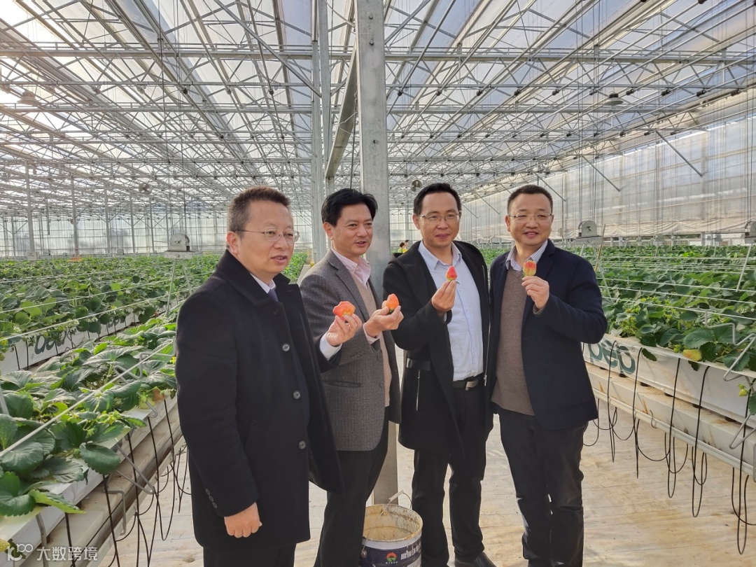 在推介后,在场的嘉宾跟随指引,一同参观了园区的草莓种植棚。在种植棚内,各位嘉宾一边品尝着美味的草莓,一边听着讲解,连连点头称赞。