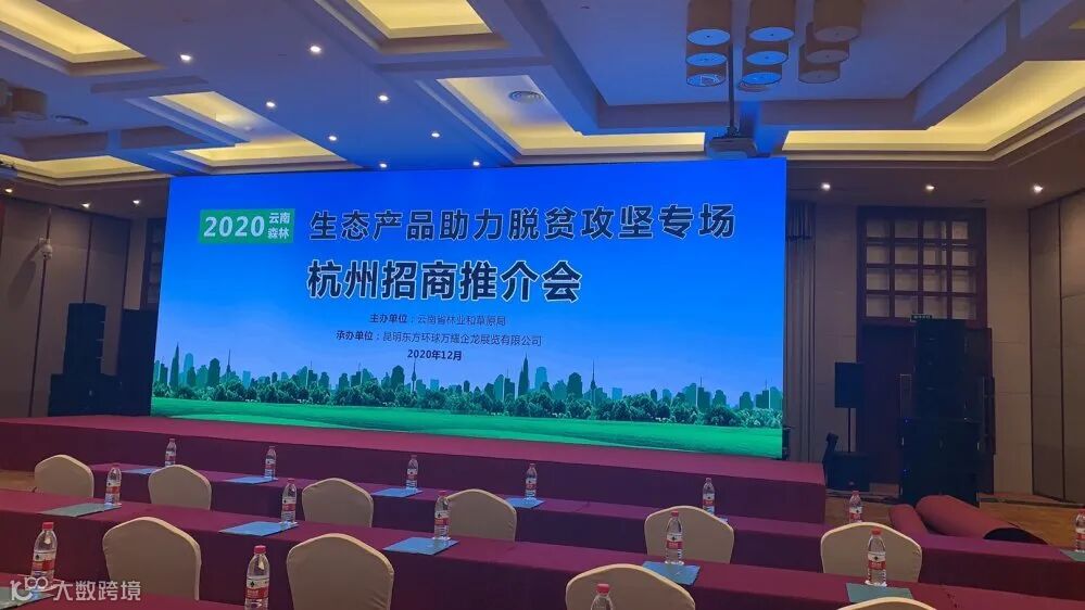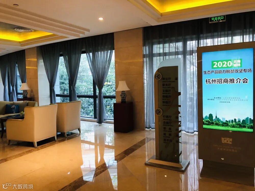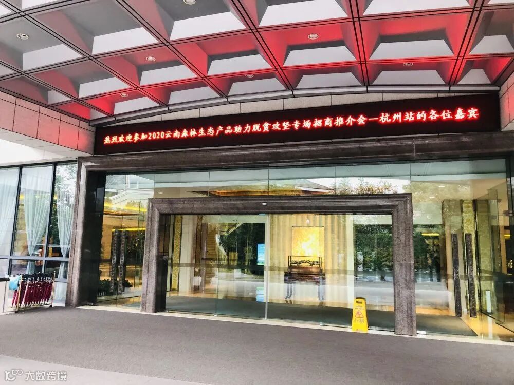 哎,主办方还让酒店LED屏滚动播放【2020云南森林生态产品助力脱贫攻坚专场招商推介会】欢迎字幕,必须点赞!