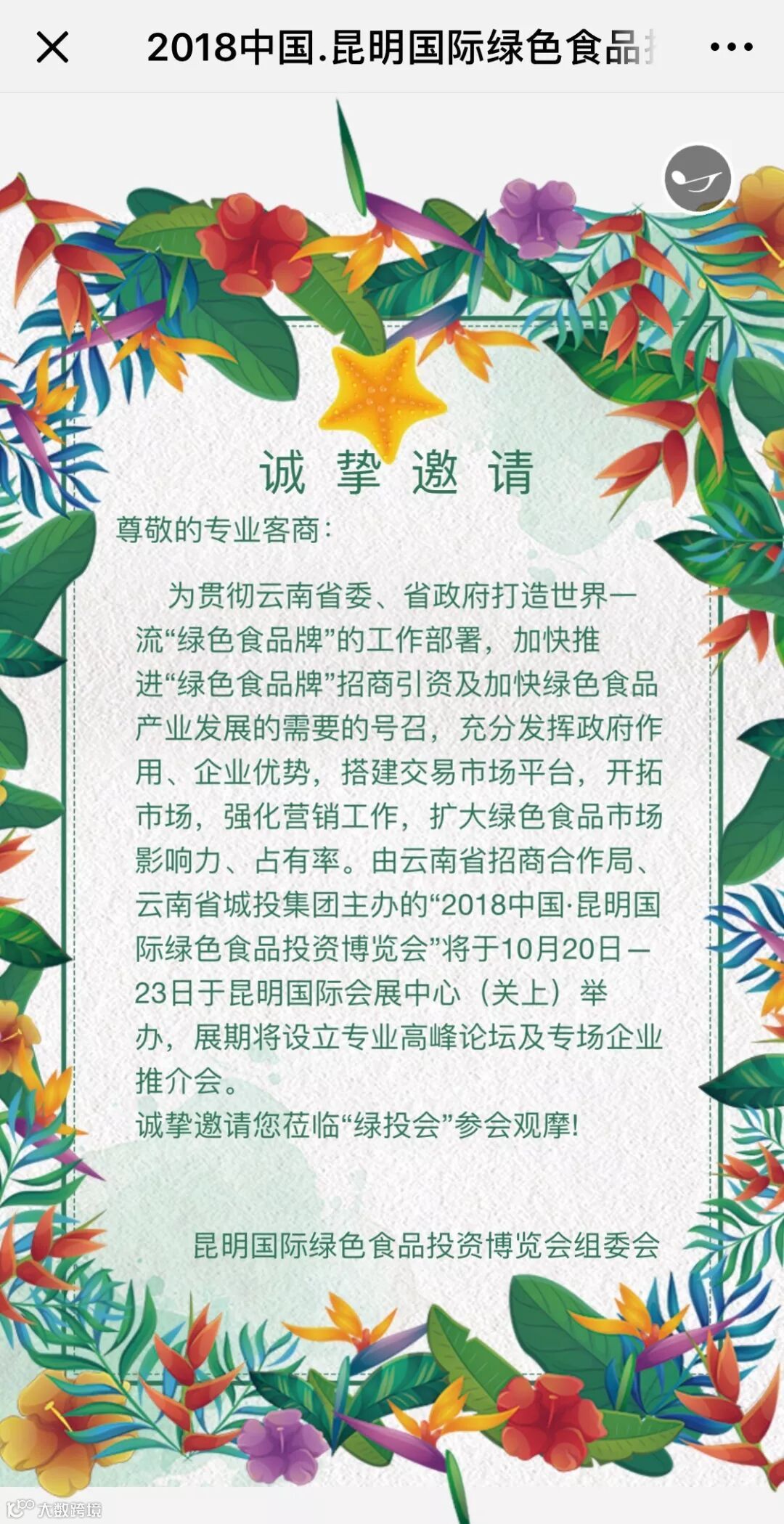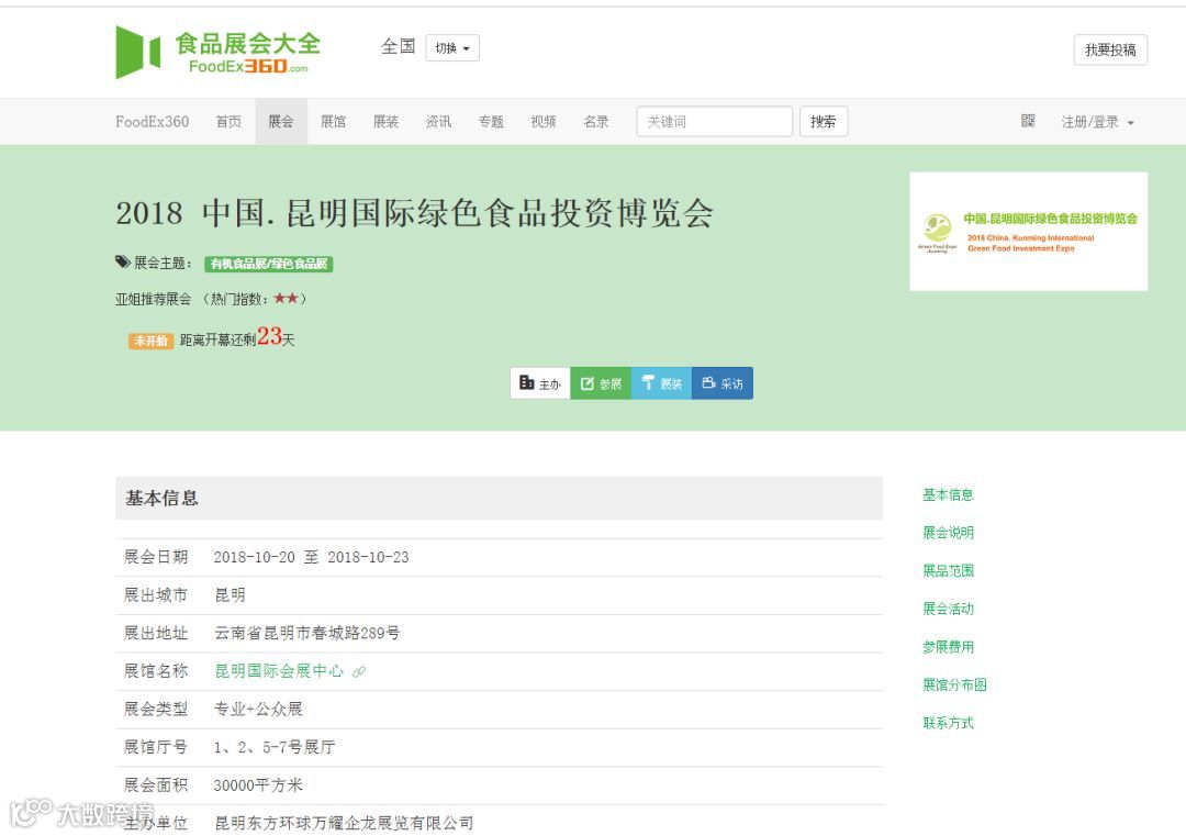 2018年10月20日至23日,首届昆明国际绿色食品投资博览会将在昆明国际会展中心隆重举行。目前,多家省内外绿色食品品牌参展商、政府部门、行业协会与宣传媒体全情投入到参展与宣展工作中,一切相关工作在有条不紊地进行中。携手打好“绿色食品牌”,春城“绿意”可期!