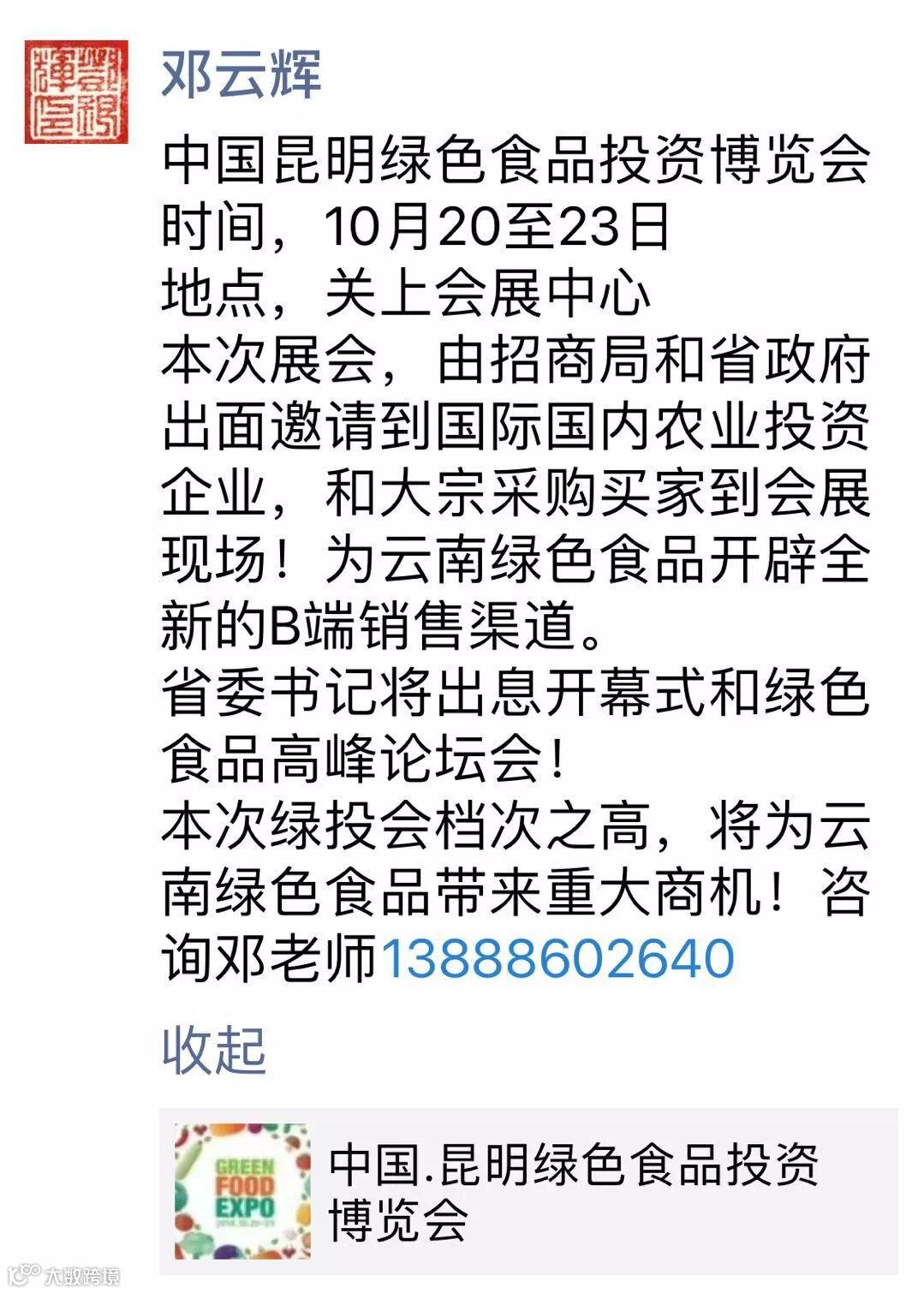 专业协会在微信朋友圈助推“绿投会”宣传