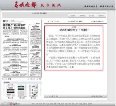 获得媒体的大力支持。6月15日,《春城晚报》在其纸媒和电子媒体“A06财富”版块同步对礼品展的即将召开进行了宣传和推广。《春城晚报》是云南地区发行量最大的报纸,面向云南省发行,也是全国“百强报纸”之一,对扩大礼品展的影响起着重要作用。