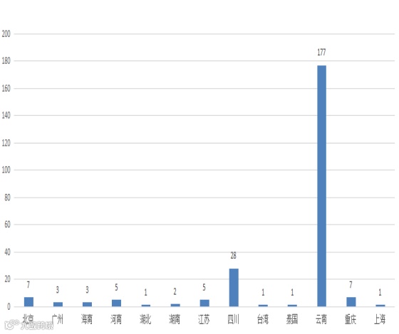 本次展会一共有全国27个省市区观众到会,云南本省观众占总数80%,广东省、河北省、湖南省及江苏省参观人数较其他省份明显高出,云南周边省份到会参观人数较少。