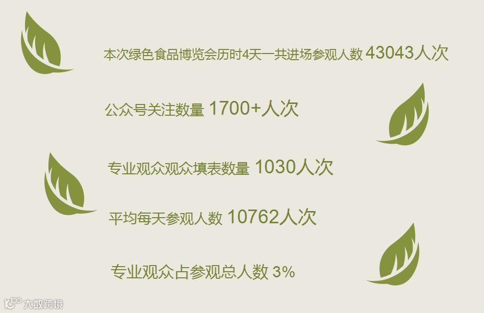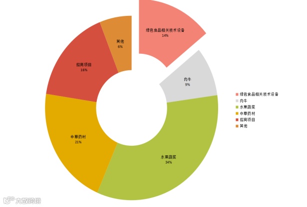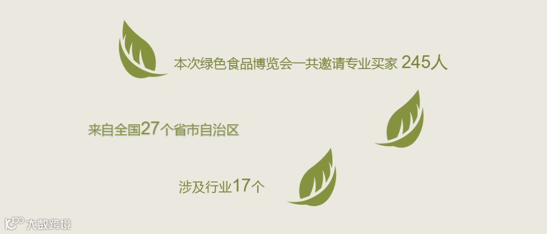 共遴选了55个投资额5亿元以上的“绿色食品牌”招商项目向客商进行发布;展会还邀请均瑶集团、大北农集团、上海来伊份公司等国内知名企业,以及埃及艾尔德食品公司、墨西哥沙姆洛克食品公司、巴西达人食品公司、JBS公司等国际知名企业,近400家企业参观展览展示和投资洽谈。