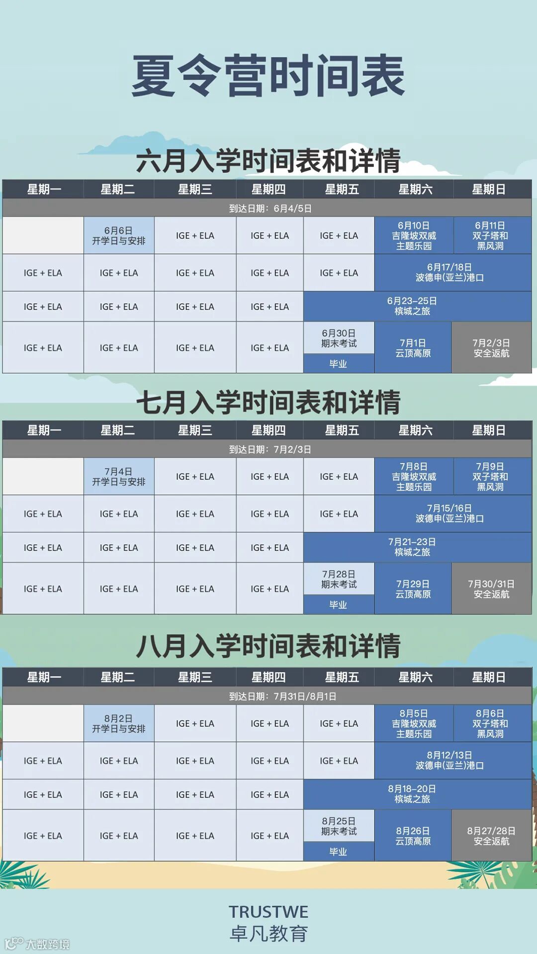 对于 2023 年的 马来西亚International Language Centre 夏令营,将有 3 个不同的入学时间(2023 年6/7/8月)。学生必须在他们想要抵达马来西亚的时间前15天注册International Language Centre夏令营。