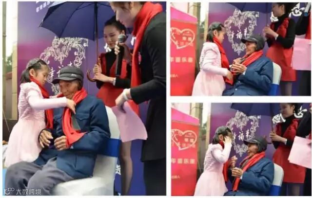 在捐赠仪式上,有特别温馨的一幕,充满朝气的少先队员为老兵代表围上了代表幸福与爱的红围巾,向老一代革命家致敬。