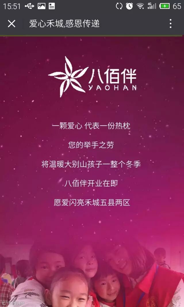 内已经有500多位爱心人士加入发起者行列,募集爱心8000多颗,为大别山贫困儿童募得18套温暖大礼包。