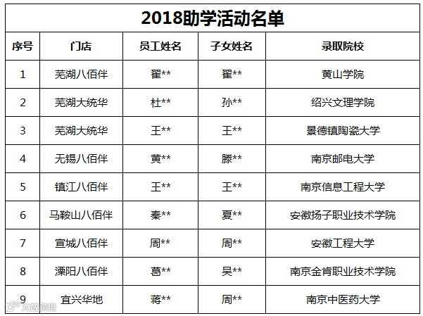 今年7月24日起,华地启动了2018年的助学活动,集团内符合资助条件的员工均可以向基金会进行申请。最终,经过基金会理事会评审,本年度助学名单出炉,以下8名员工子女符合我们的资助条件,将获得集团赠予的5000元现金。