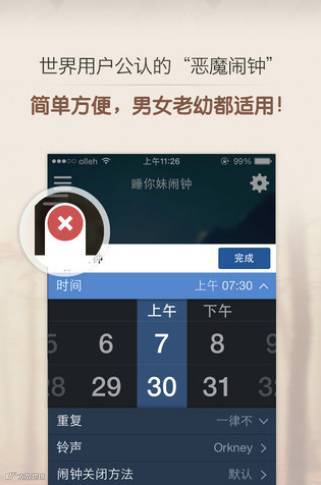 Alarmy 的应用名称用括号标注了一句:Sleep if you can,官方的中文翻译叫“睡你妹闹钟”。基础的隔几分钟重复一次就不提了,为了关掉闹钟,你可以选择在昨晚拍过照的角度再拍一张照、或是大力摇晃手机 30 秒,实在不行,还可以做几道用心算需要几秒钟的数学题——你手忙脚乱打开手机计算器的时候,闹钟还会接着响。