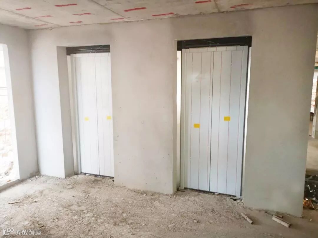 室内:厕所砌砖完成了70%,每层每间房抹灰工作完成了90%,每层的电气线管完成60%;电梯正在装配轨道。