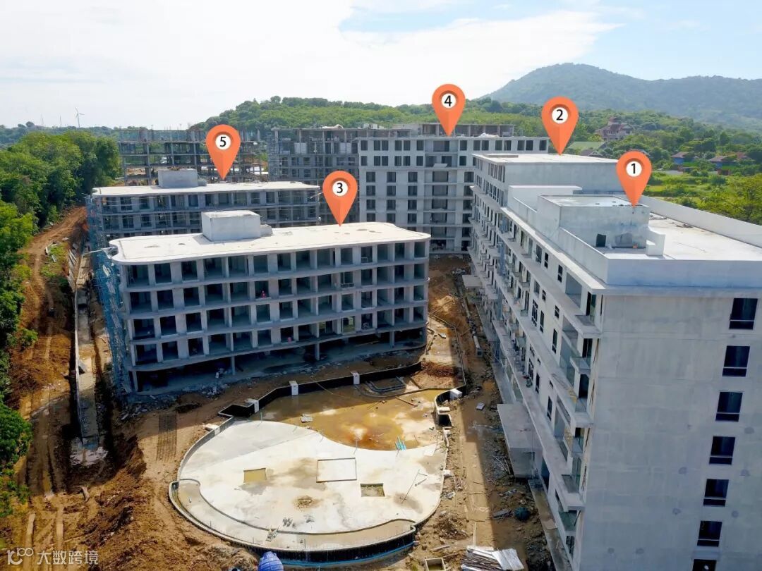 ● 水系泳池 墙体结构完成45%,接下来是场地清理,3,5号楼地面水平调整。