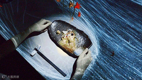 不仅如此,投影图像还会受到就餐者行为的影响。当用餐者移动盘子位置时,“水流”也会相应的改变方向。