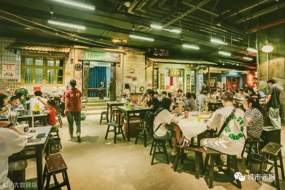 长沙“超级文和友”是一个江湖味十足的立体空间。在这座7层楼、20000㎡的空间里,一个复古风的市井社区展现于眼前。仿佛从闹市区瞬间被拉回到儿时那个记忆中的八十年代的街道和老城区现场。喧闹的人群声息也似乎将那个年代的邻里关系进行了真实还原。