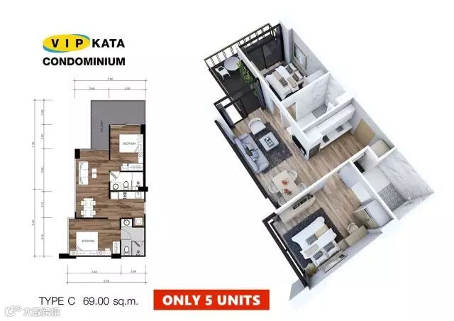 作为最具投资价值潜力的项目,VIP酒店选址在普吉岛kata海滩卡塔夜市对面,占地2.25莱共计4100平方米,2栋主体楼。
