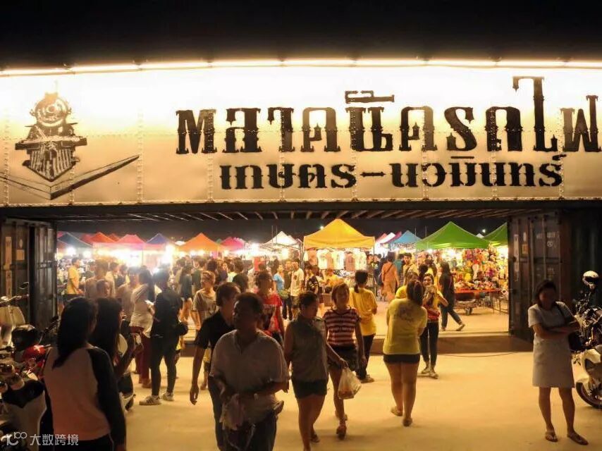 这是曼谷的第三个铁路市场,亦是一个新的购物区。这曼谷夜市以老式火车市场为概念,并分为两个部份:分别为漫长的步行街,让你可以在此购买各种商品,如潮流的时尚衣服、手袋、鞋子、又或是二手物品和稀有古董;而喜欢美食的则可以选择到集装箱区,吃遍那里的食店、以及到小酒馆聆听现场DJ和乐队的表演,令你的整个晚上都充满不同类型的娱乐。