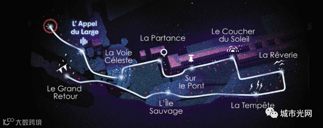 夜幕降临,沿着 1.2 公里的路线,游客将被光、布景、声音和视频投影的魔力所吸引。这种身临其境的参与式体验将使您沉浸在充满情感的集体和海上冒险中的诗歌中。