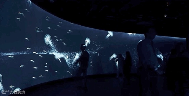 沉浸式海湾溪流体验使用专门开发的计算机算法来展示成千上万的虚拟沙丁鱼和其他海洋生物的现实和不断变化的教育行为。借助摄像头跟踪传感器,使参观者可以实时影响超高清流动环境,这类似于游猎或水肺潜水。
