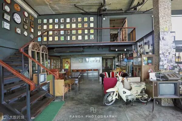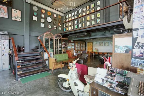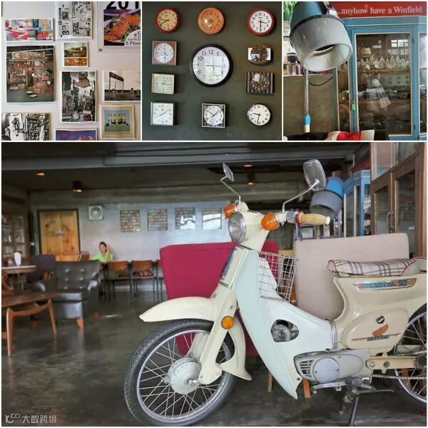 一旁复古造型的摩托车,让人想起了《罗马假日》里乔带着安妮公主“私奔”的场景。古老的英伦沙发、年久失修的玻璃柜,还有零零散散的复古装饰小物,都仿佛将人带回到上世纪60年代。